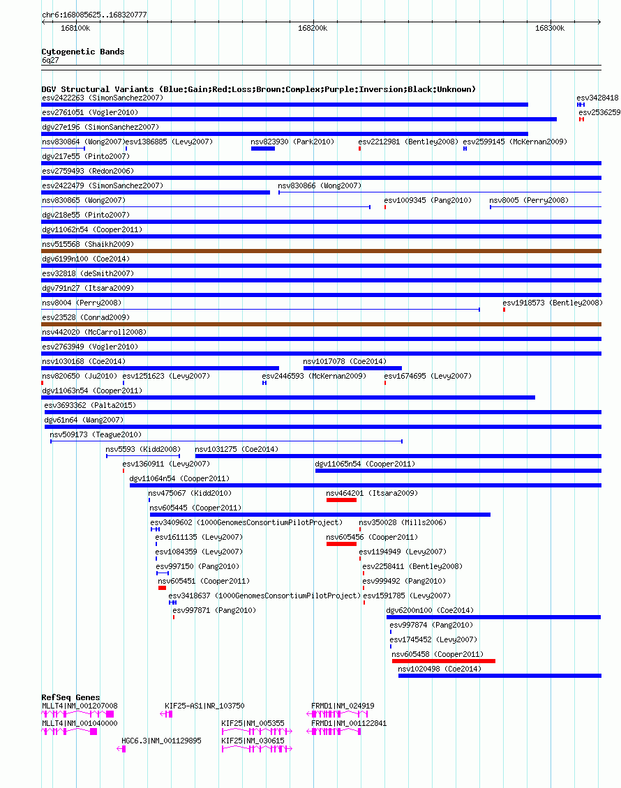 Variant DetailsVariant: nsv605402| Internal ID | 16392811 | | Landmark | | | Location Information | | | Cytoband | 6q27 | | Allele length | | Assembly | Allele length | | hg38 | 235153 | | hg19 | 235153 | | hg18 | 235153 |