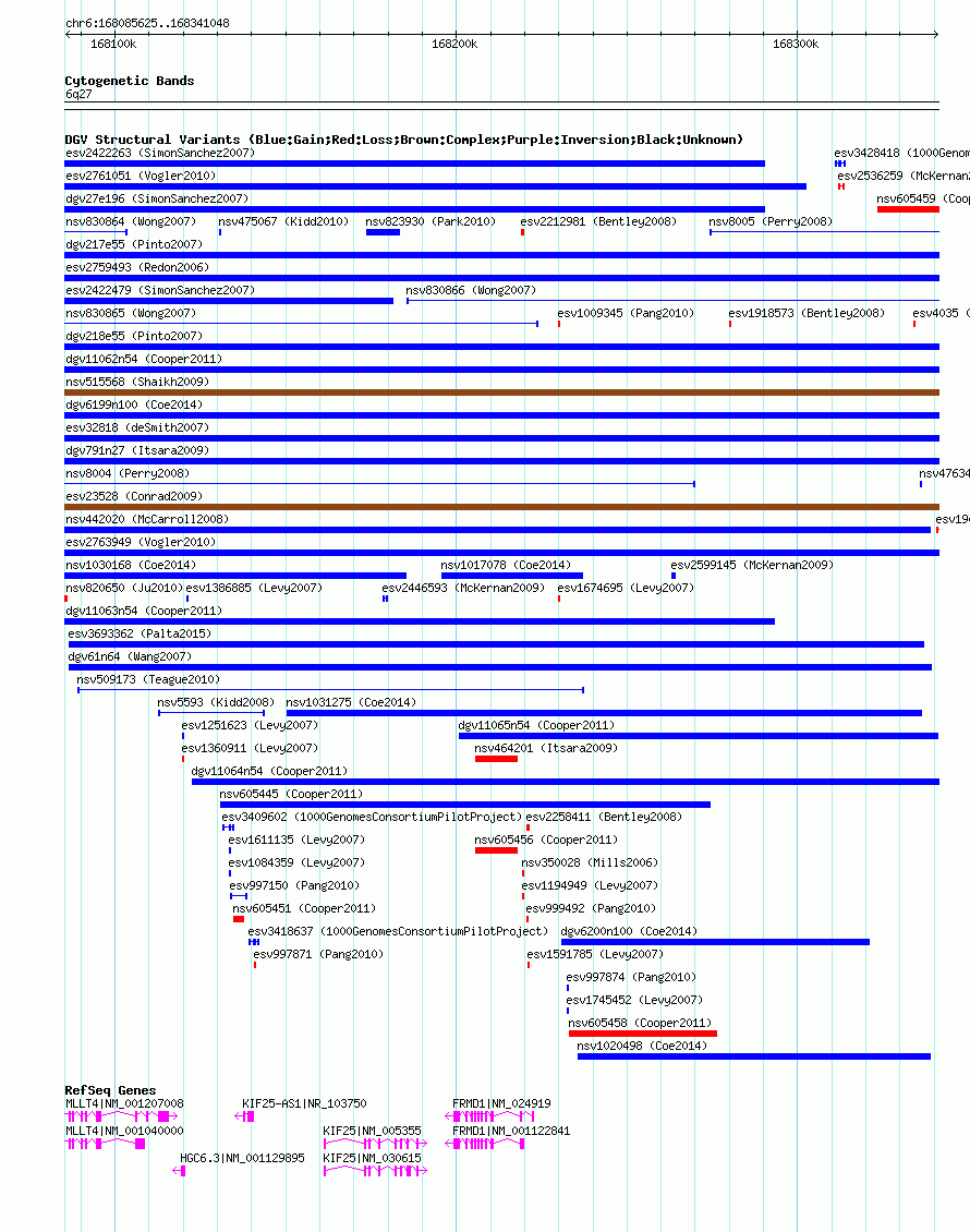 Variant DetailsVariant: nsv605407| Internal ID | 16392816 | | Landmark | | | Location Information | | | Cytoband | 6q27 | | Allele length | | Assembly | Allele length | | hg38 | 255424 | | hg19 | 255424 | | hg18 | 255424 |