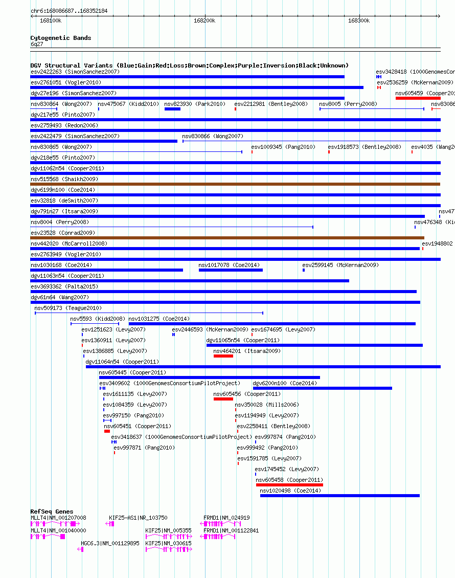 Variant DetailsVariant: nsv605419| Internal ID | 16392828 | | Landmark | | | Location Information | | | Cytoband | 6q27 | | Allele length | | Assembly | Allele length | | hg38 | 265498 | | hg19 | 265498 | | hg18 | 265498 |