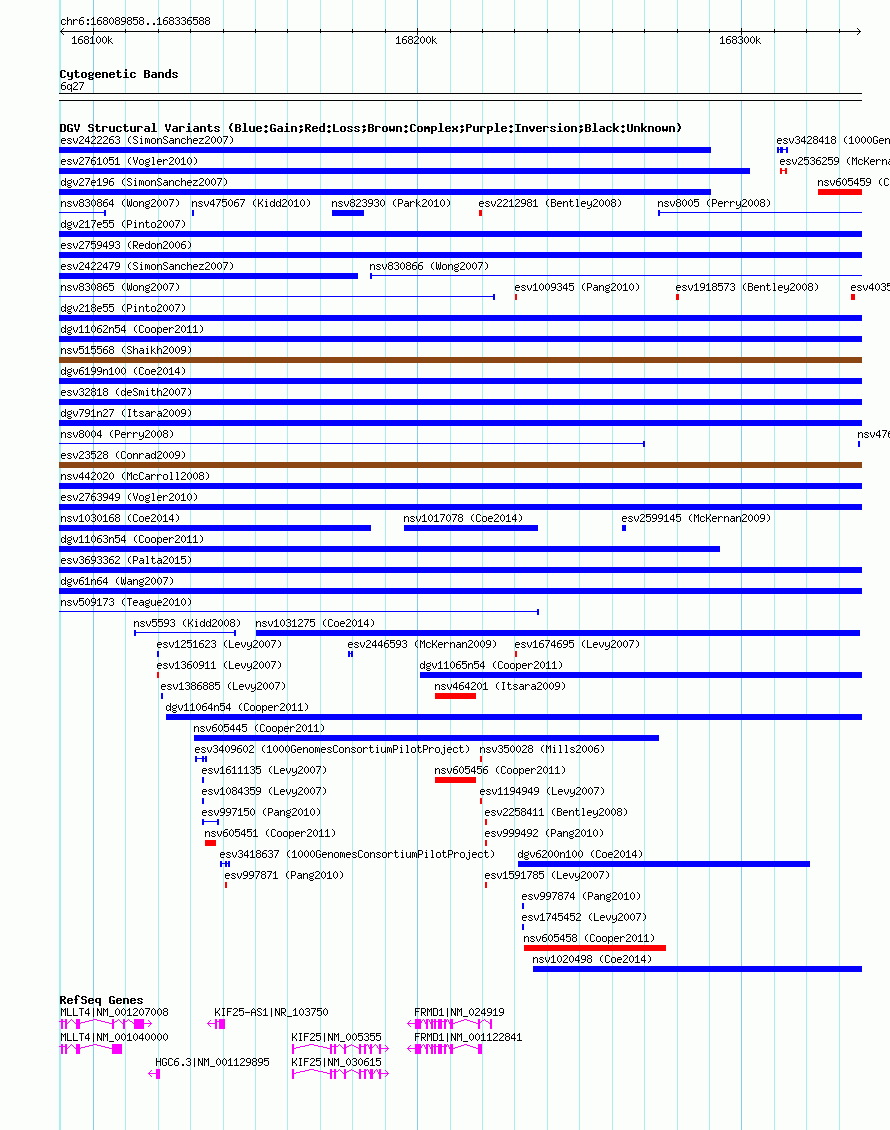 Variant DetailsVariant: nsv605423| Internal ID | 16392832 | | Landmark | | | Location Information | | | Cytoband | 6q27 | | Allele length | | Assembly | Allele length | | hg38 | 246731 | | hg19 | 246731 | | hg18 | 246731 |
