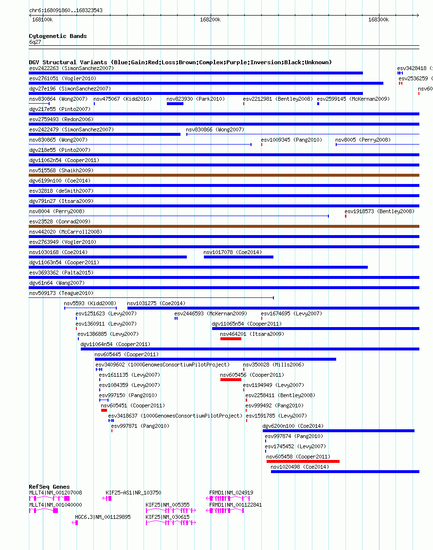 Variant DetailsVariant: nsv605428| Internal ID | 16392837 | | Landmark | | | Location Information | | | Cytoband | 6q27 | | Allele length | | Assembly | Allele length | | hg38 | 231684 | | hg19 | 231684 | | hg18 | 231684 |