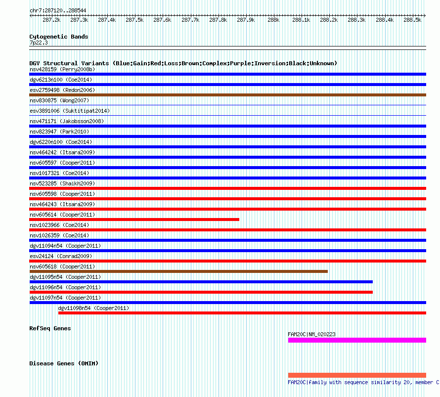 Variant DetailsVariant: nsv605620| Internal ID | 16393029 | | Landmark | | | Location Information | | | Cytoband | 7p22.3 | | Allele length | | Assembly | Allele length | | hg38 | 1425 | | hg19 | 1425 | | hg18 | 1425 |