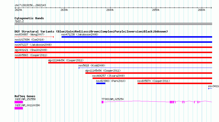 Variant DetailsVariant: nsv605863| Internal ID | 16393272 | | Landmark | | | Location Information | | | Cytoband | 7p22.2 | | Allele length | | Assembly | Allele length | | hg38 | 42988 | | hg19 | 42988 | | hg18 | 42988 |