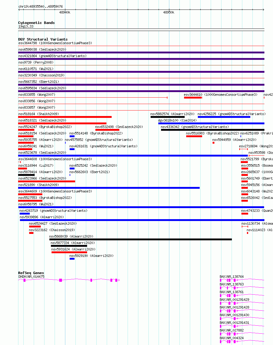 | | Variant Type | CNV duplication | | Copy Number | | | Allele State | | | Allele Origin | | | Probe Count | | | Validation Flag | | | Merged Status | M | | Merged Variants | | | Supporting Variants | nssv17625043 | | Samples | | | Known Genes | BAX, DHDH | | Method | Sequencing | | Analysis | | | Platform | | | Comments | | | Reference | Wu_et_al_2021 | | Pubmed ID | 34764282 | | Accession Number(s) | nsv6058795