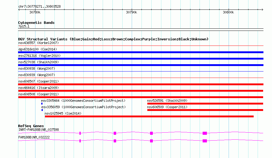 Variant DetailsVariant: nsv606508| Internal ID | 16393917 | | Landmark | | | Location Information | | | Cytoband | 7p14.3 | | Allele length | | Assembly | Allele length | | hg38 | 25258 | | hg19 | 25258 | | hg18 | 25258 |