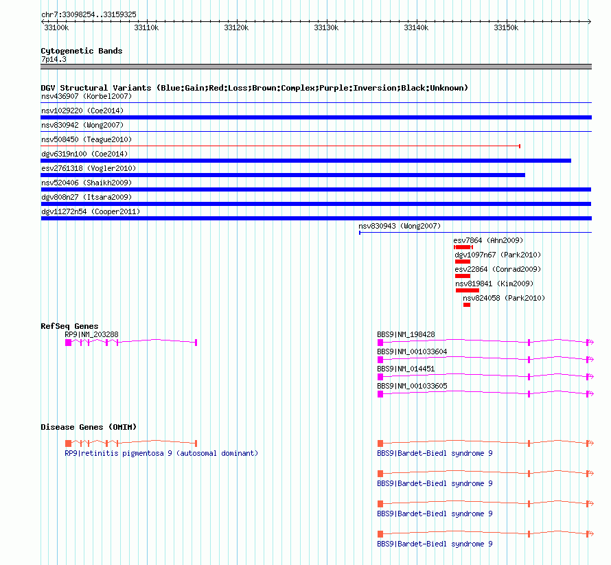 Variant DetailsVariant: nsv606608| Internal ID | 16394017 | | Landmark | | | Location Information | | | Cytoband | 7p14.3 | | Allele length | | Assembly | Allele length | | hg38 | 61072 | | hg19 | 61072 | | hg18 | 61072 |