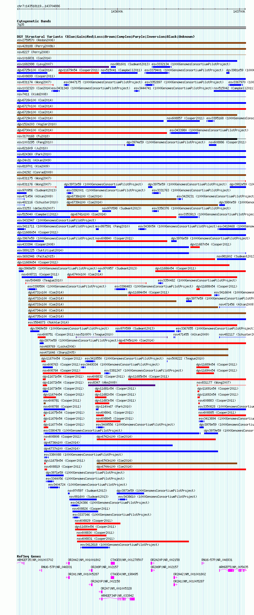Variant DetailsVariant: nsv608710| Internal ID | 16396119 | | Landmark | | | Location Information | | | Cytoband | 7q35 | | Allele length | | Assembly | Allele length | | hg38 | 186768 | | hg19 | 186768 | | hg18 | 186768 |