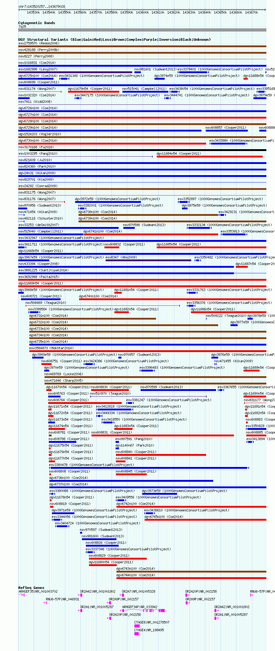 Variant DetailsVariant: nsv608715| Internal ID | 16396124 | | Landmark | | | Location Information | | | Cytoband | 7q35 | | Allele length | | Assembly | Allele length | | hg38 | 158770 | | hg19 | 158770 | | hg18 | 158770 |