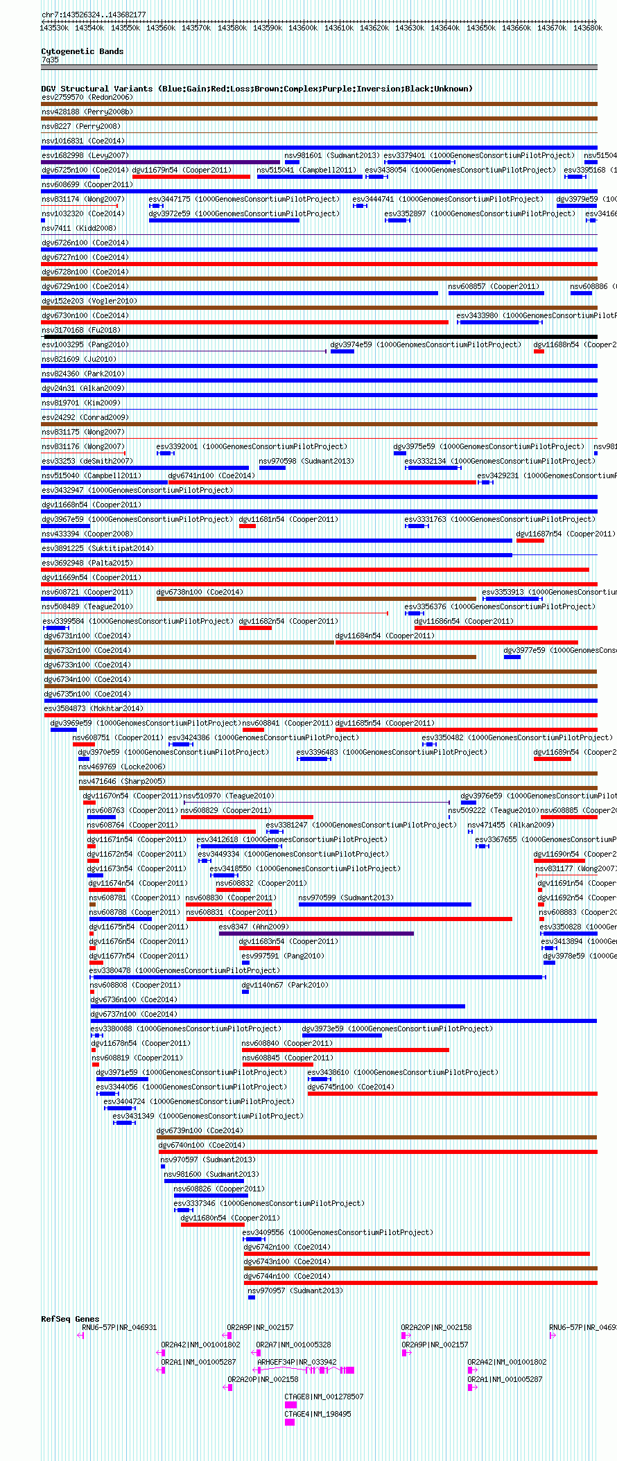 Variant DetailsVariant: nsv608736| Internal ID | 16396145 | | Landmark | | | Location Information | | | Cytoband | 7q35 | | Allele length | | Assembly | Allele length | | hg38 | 155854 | | hg19 | 155854 | | hg18 | 155854 |