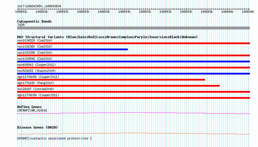 | | Variant Type | CNV loss | | Copy Number | | | Allele State | | | Allele Origin | | | Probe Count | | | Validation Flag | | | Merged Status | M | | Merged Variants | dgv11706n54 | | Supporting Variants | nssv1098060 | | Samples | | | Known Genes | CNTNAP2, MIR548I4 | | Method | SNP array | | Analysis | Illumina SNP array copy number analysis | | Platform | Not reported | | Comments | | | Reference | Cooper_et_al_2011 | | Pubmed ID | 21841781 | | Accession Number(s) | nsv608949