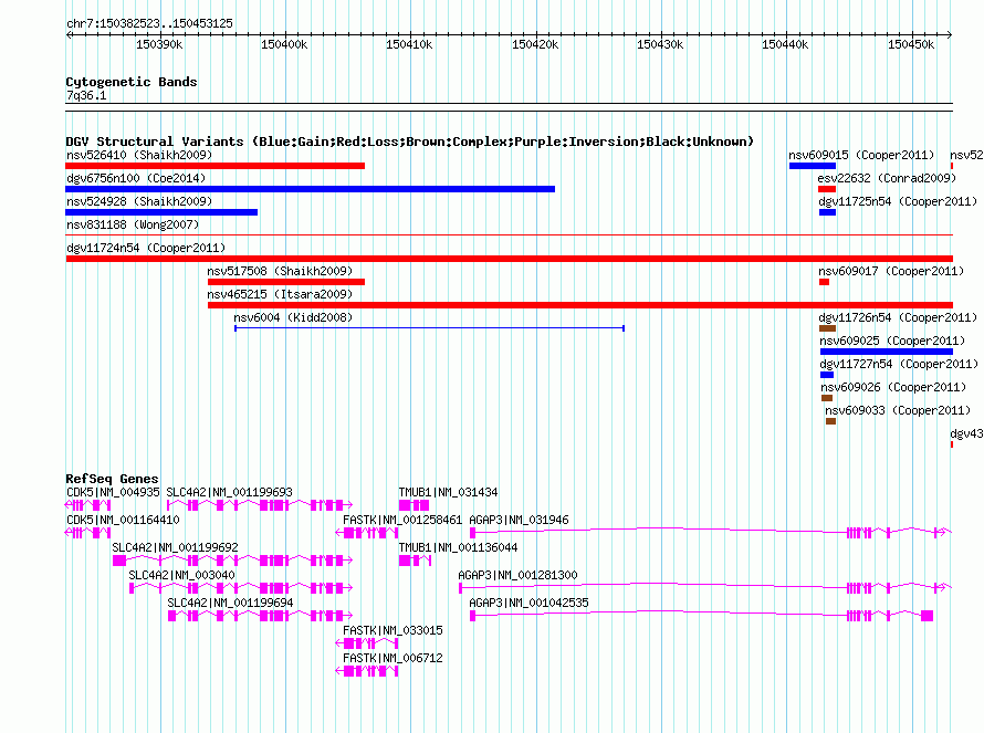 Variant DetailsVariant: nsv609012| Internal ID | 16049735 | | Landmark | | | Location Information | | | Cytoband | 7q36.1 | | Allele length | | Assembly | Allele length | | hg38 | 70603 | | hg19 | 70603 | | hg18 | 70603 |