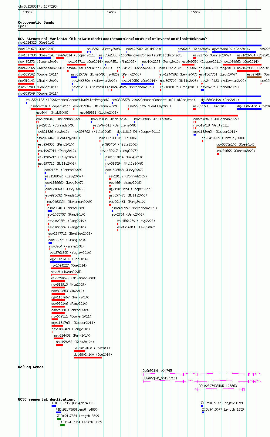 Variant DetailsVariant: nsv609509Internal ID | 16050232 | Landmark | | Location Information | | Cytoband | 8p23.3 | Allele length | Assembly | Allele length | hg38 | 288779 | hg19 | 288779 | hg18 | 288779 |