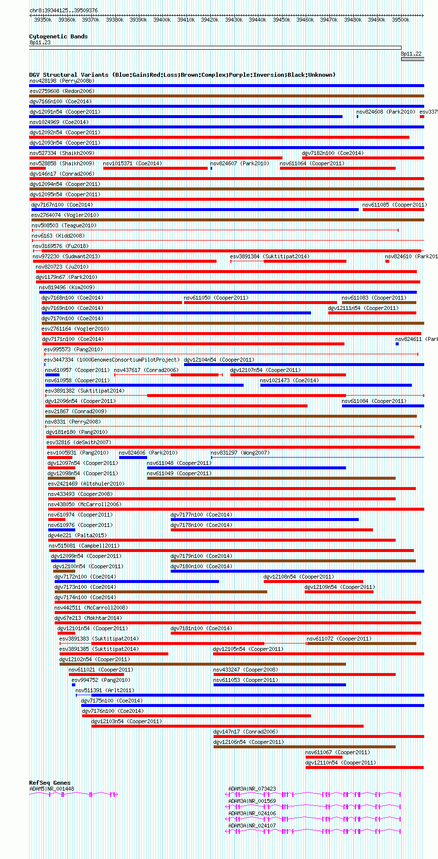 Variant DetailsVariant: nsv610956| Internal ID | 16398365 | | Landmark | | | Location Information | | | Cytoband | 8p11.22 | | Allele length | | Assembly | Allele length | | hg38 | 165252 | | hg19 | 165252 | | hg18 | 165252 |