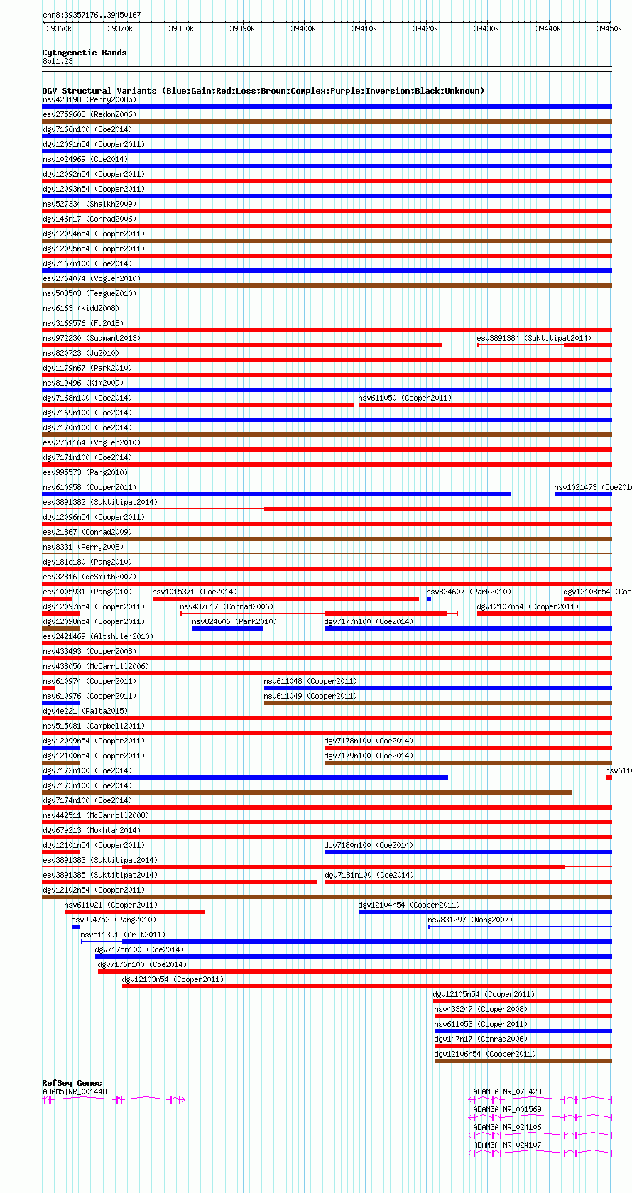 Variant DetailsVariant: nsv611018| Internal ID | 16398427 | | Landmark | | | Location Information | | | Cytoband | 8p11.22 | | Allele length | | Assembly | Allele length | | hg38 | 92992 | | hg19 | 92992 | | hg18 | 92992 |