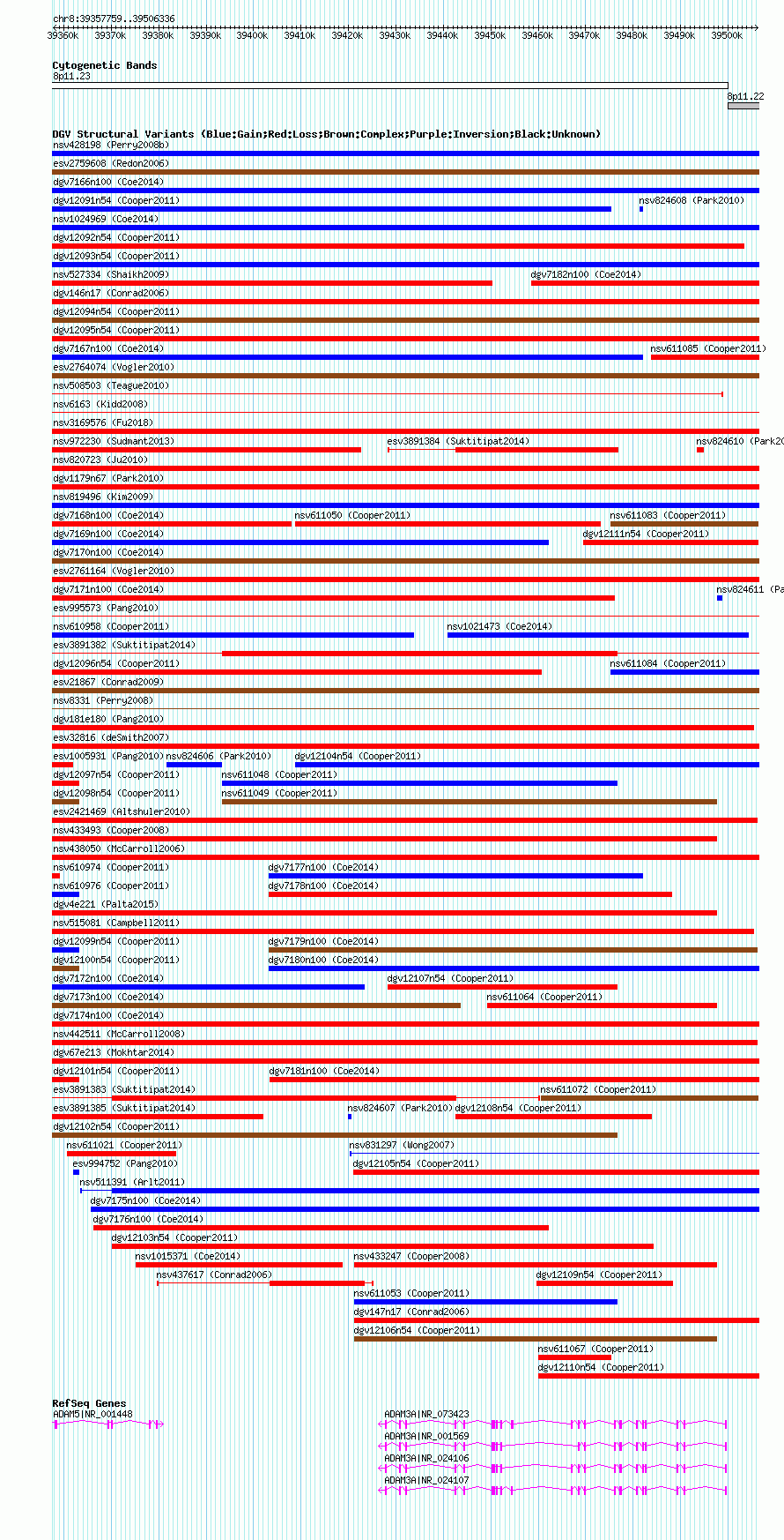 Variant DetailsVariant: nsv611020| Internal ID | 16398429 | | Landmark | | | Location Information | | | Cytoband | 8p11.22 | | Allele length | | Assembly | Allele length | | hg38 | 148578 | | hg19 | 148578 | | hg18 | 148578 |