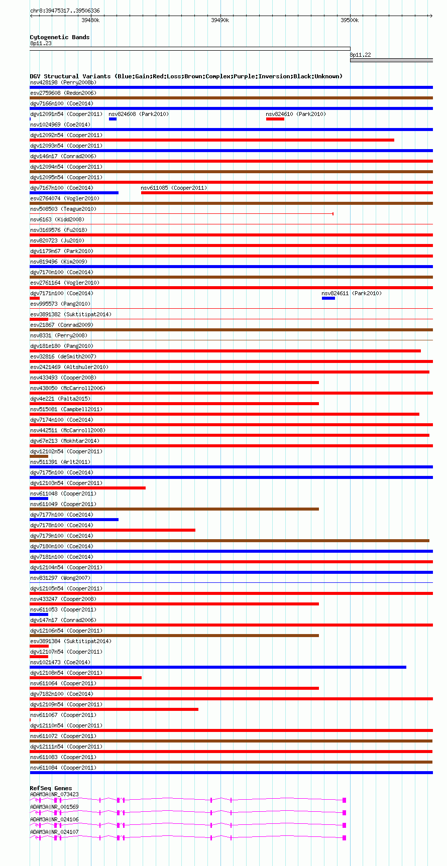 Variant DetailsVariant: nsv611083| Internal ID | 16398492 | | Landmark | | | Location Information | | | Cytoband | 8p11.22 | | Allele length | | Assembly | Allele length | | hg38 | 31020 | | hg19 | 31020 | | hg18 | 31020 |