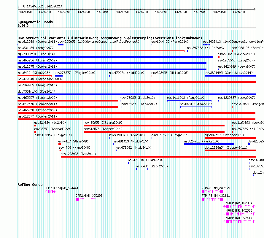 | Known Genes | GPR20, LOC731779, MROH5, PTP4A3 |