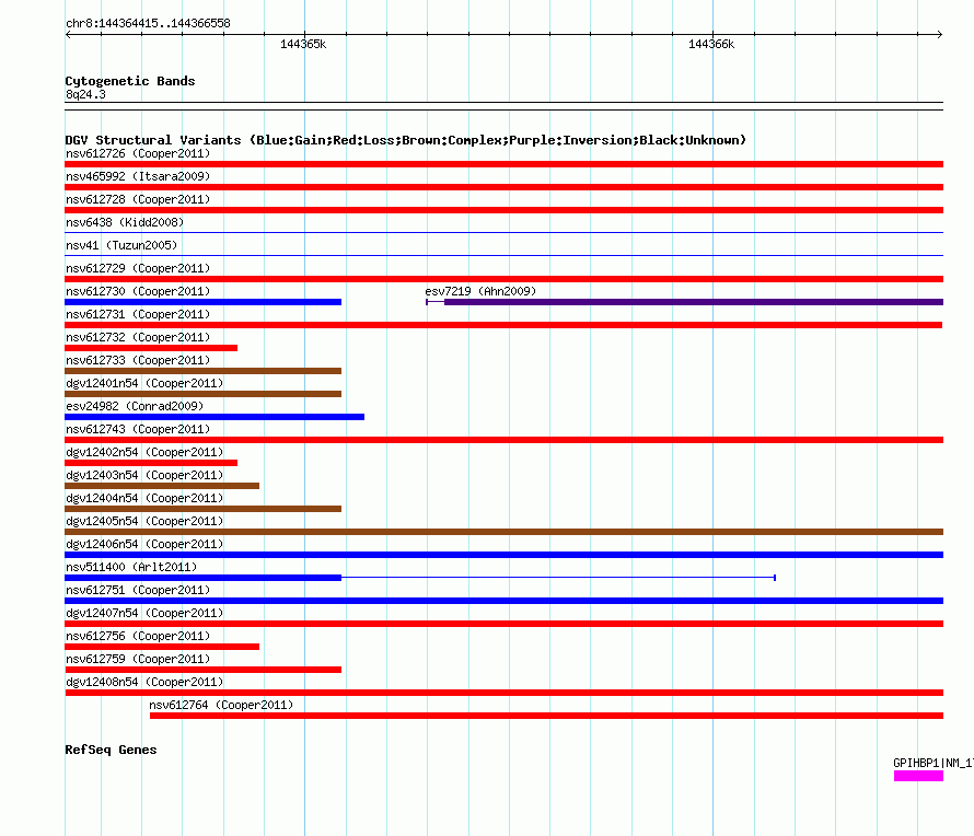 Variant DetailsVariant: nsv612760| Internal ID | 16400169 | | Landmark | | | Location Information | | | Cytoband | 8q24.3 | | Allele length | | Assembly | Allele length | | hg38 | 1883 | | hg19 | 2144 | | hg18 | 2144 |