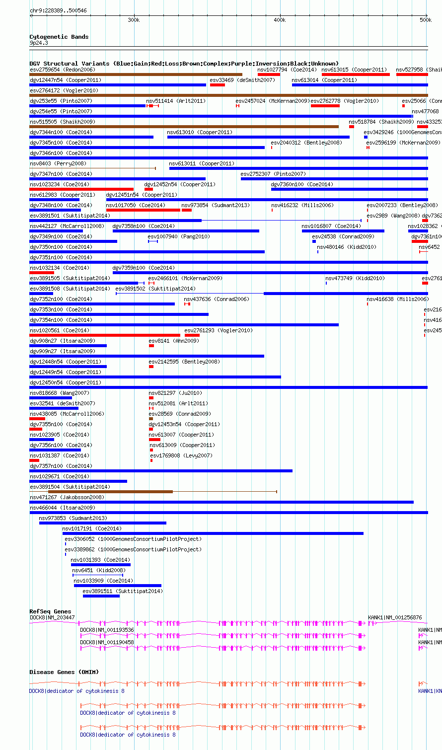 Variant DetailsVariant: nsv612997| Internal ID | 16400406 | | Landmark | | | Location Information | | | Cytoband | 9p24.3 | | Allele length | | Assembly | Allele length | | hg38 | 272158 | | hg19 | 272158 | | hg18 | 272158 |