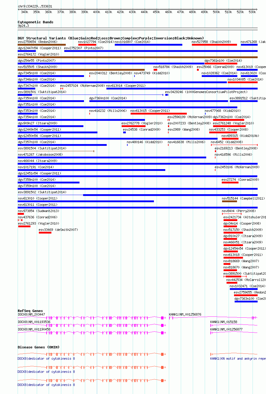 Variant DetailsVariant: nsv613013| Internal ID | 16400422 | | Landmark | | | Location Information | | | Cytoband | 9p24.3 | | Allele length | | Assembly | Allele length | | hg38 | 199403 | | hg19 | 199403 | | hg18 | 199403 |
