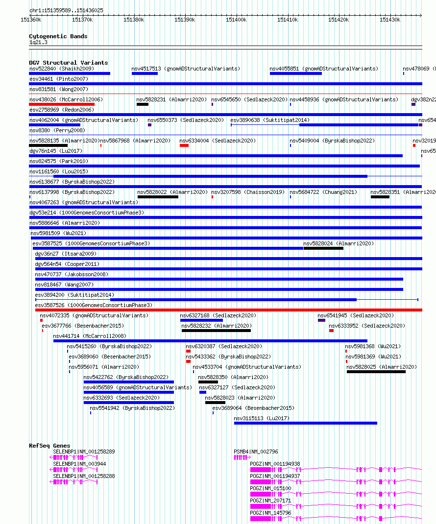 Variant DetailsVariant: nsv6138677| Internal ID | 337861 | | Landmark | | | Location Information | | | Cytoband | 1q21.3 | | Allele length | | Assembly | Allele length | | hg38 | 76437 | | hg19 | 76437 |