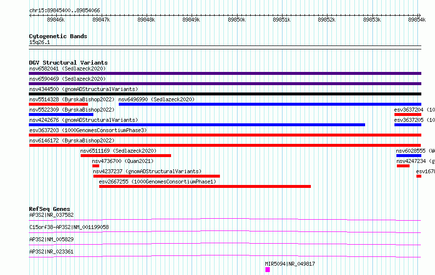 Variant DetailsVariant: nsv6146172| Internal ID | 345377 | | Landmark | | | Location Information | | | Cytoband | 15q26.1 | | Allele length | | Assembly | Allele length | | hg38 | 8667 | | hg19 | 8667 |