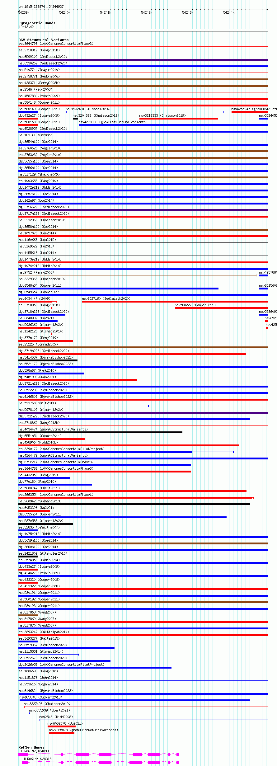 Variant DetailsVariant: nsv6146824| Internal ID | 346030 | | Landmark | | | Location Information | | | Cytoband | 19q13.42 | | Allele length | | Assembly | Allele length | | hg38 | 6064 | | hg19 | 6029 |