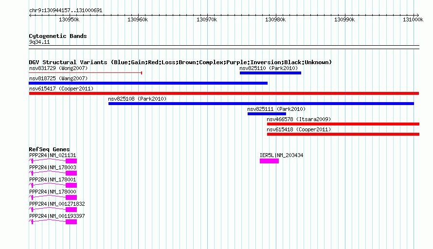 | | Variant Type | CNV loss | | Copy Number | | | Allele State | | | Allele Origin | | | Probe Count | | | Validation Flag | | | Merged Status | M | | Merged Variants | | | Supporting Variants | nssv1143574 | | Samples | | | Known Genes | IER5L, PPP2R4 | | Method | SNP array | | Analysis | Illumina SNP array copy number analysis | | Platform | Not reported | | Comments | | | Reference | Cooper_et_al_2011 | | Pubmed ID | 21841781 | | Accession Number(s) | nsv615417