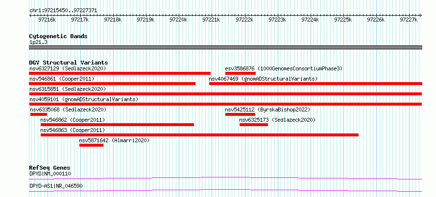 Variant DetailsVariant: nsv6315851| Internal ID | 20848925 | | Landmark | | | Location Information | | | Cytoband | 1p21.3 | | Allele length | | Assembly | Allele length | | hg38 | 11922 | | hg19 | 11922 |