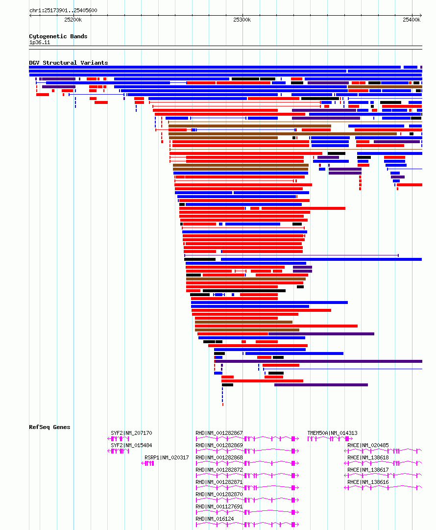 | | Variant Type | CNV duplication | | Copy Number | | | Allele State | | | Allele Origin | | | Probe Count | | | Validation Flag | | | Merged Status | M | | Merged Variants | | | Supporting Variants | nssv18202825 | | Samples | | | Known Genes | C1orf63, RHCE, RHD, SYF2, TMEM50A | | Method | Sequencing | | Analysis | | | Platform | | | Comments | | | Reference | Sedlazeck_et_al_2020 | | Pubmed ID | 99999999 | | Accession Number(s) | nsv6321813