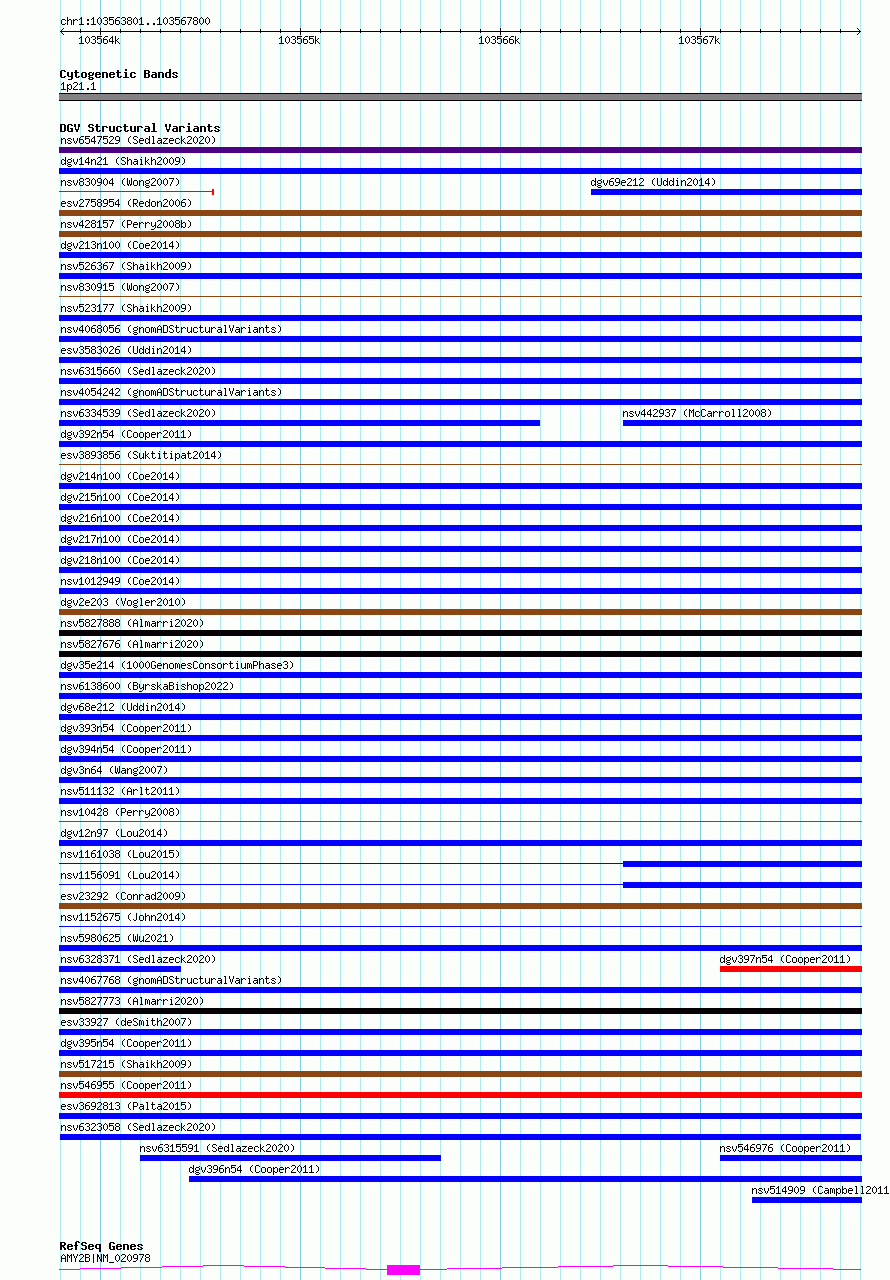 | | Variant Type | CNV duplication | | Copy Number | | | Allele State | | | Allele Origin | | | Probe Count | | | Validation Flag | | | Merged Status | M | | Merged Variants | | | Supporting Variants | nssv18200329 | | Samples | | | Known Genes | AMY2B | | Method | Sequencing | | Analysis | | | Platform | | | Comments | | | Reference | Sedlazeck_et_al_2020 | | Pubmed ID | 99999999 | | Accession Number(s) | nsv6323058