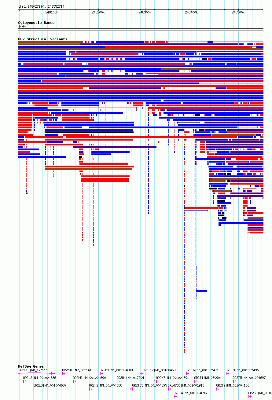 | | Variant Type | CNV duplication | | Copy Number | | | Allele State | | | Allele Origin | | | Probe Count | | | Validation Flag | | | Merged Status | M | | Merged Variants | dgv584n223 | | Supporting Variants | nssv18201320 | | Samples | | | Known Genes | OR14C36, OR2G6, OR2L13, OR2L2, OR2L3, OR2M1P, OR2M2, OR2M3, OR2M4, OR2M5, OR2M7, OR2T1, OR2T12, OR2T2, OR2T3, OR2T33, OR2T4, OR2T5, OR2T6 | | Method | Sequencing | | Analysis | | | Platform | | | Comments | | | Reference | Sedlazeck_et_al_2020 | | Pubmed ID | 99999999 | | Accession Number(s) | nsv6329511