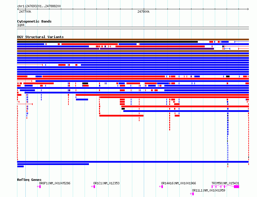| | Variant Type | CNV duplication | | Copy Number | | | Allele State | | | Allele Origin | | | Probe Count | | | Validation Flag | | | Merged Status | M | | Merged Variants | dgv583n223 | | Supporting Variants | nssv18201308 | | Samples | | | Known Genes | OR11L1, OR14A16, OR1C1, OR6F1, TRIM58 | | Method | Sequencing | | Analysis | | | Platform | | | Comments | | | Reference | Sedlazeck_et_al_2020 | | Pubmed ID | 99999999 | | Accession Number(s) | nsv6330158