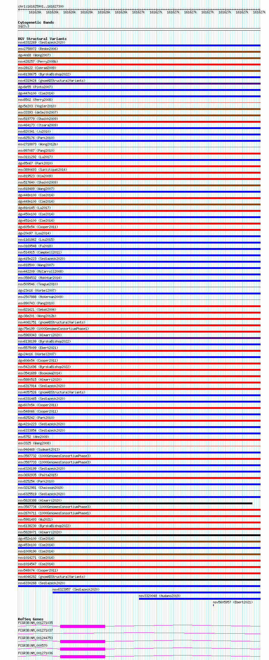 Variant DetailsVariant: nsv6330268| Internal ID | 20863424 | | Landmark | | | Location Information | | | Cytoband | 1q23.3 | | Allele length | | Assembly | Allele length | | hg38 | 1400 | | hg19 | 1400 |