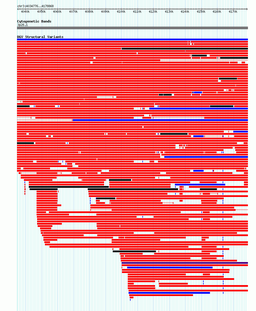 Variant DetailsVariant: nsv6359156| Internal ID | 21016709 | | Landmark | | | Location Information | | | Cytoband | 3p26.1 | | Allele length | | Assembly | Allele length | | hg38 | 144093 | | hg19 | 144093 |