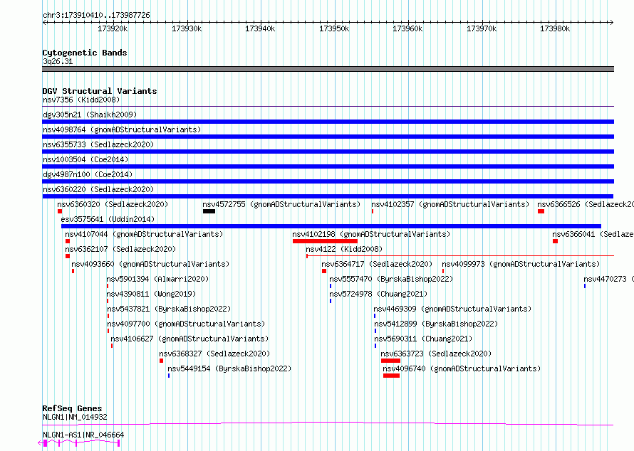 Variant DetailsVariant: nsv6360220| Internal ID | 21017773 | | Landmark | | | Location Information | | | Cytoband | 3q26.31 | | Allele length | | Assembly | Allele length | | hg38 | 77317 | | hg19 | 77317 |