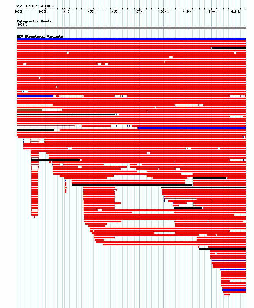 Variant DetailsVariant: nsv6360842| Internal ID | 21018395 | | Landmark | | | Location Information | | | Cytoband | 3p26.1 | | Allele length | | Assembly | Allele length | | hg38 | 94758 | | hg19 | 94758 |