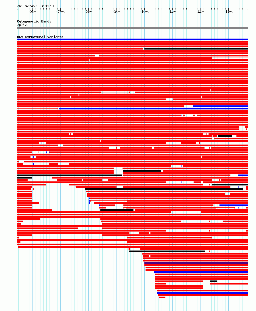 Variant DetailsVariant: nsv6364096| Internal ID | 21021649 | | Landmark | | | Location Information | | | Cytoband | 3p26.1 | | Allele length | | Assembly | Allele length | | hg38 | 82181 | | hg19 | 82181 |