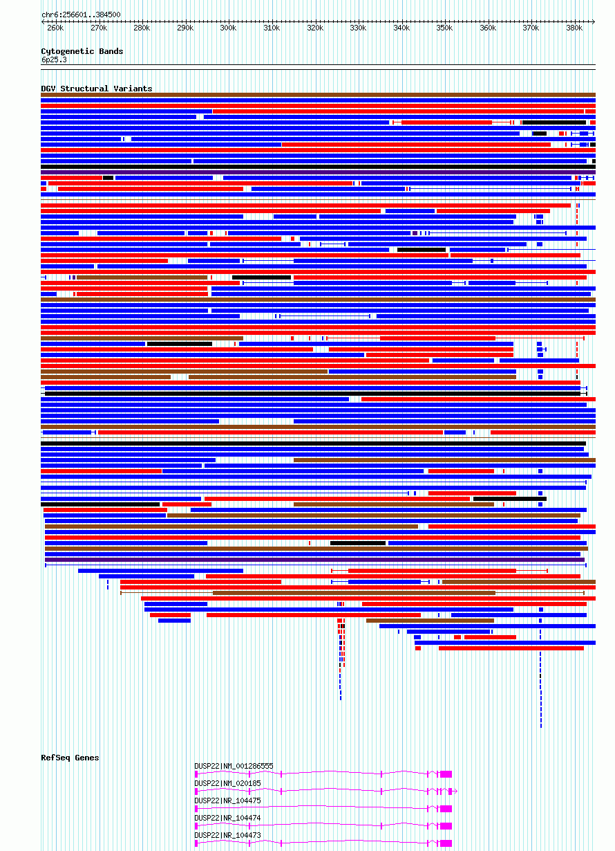 Variant DetailsVariant: nsv6399088| Internal ID | 21056641 | | Landmark | | | Location Information | | | Cytoband | 6p25.3 | | Allele length | | Assembly | Allele length | | hg38 | 127900 | | hg19 | 127900 |