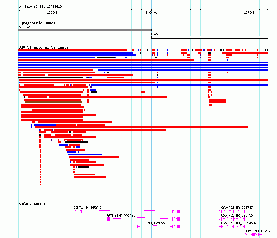 Variant DetailsVariant: nsv6403222| Internal ID | 21060775 | | Landmark | | | Location Information | | | Cytoband | 6p24.2 | | Allele length | | Assembly | Allele length | | hg38 | 252972 | | hg19 | 252972 |