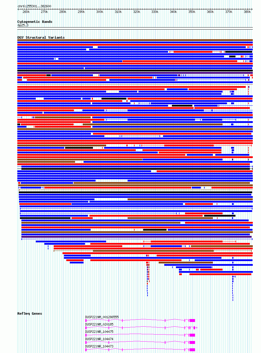 Variant DetailsVariant: nsv6414891| Internal ID | 21072444 | | Landmark | | | Location Information | | | Cytoband | 6p25.3 | | Allele length | | Assembly | Allele length | | hg38 | 127300 | | hg19 | 127300 |