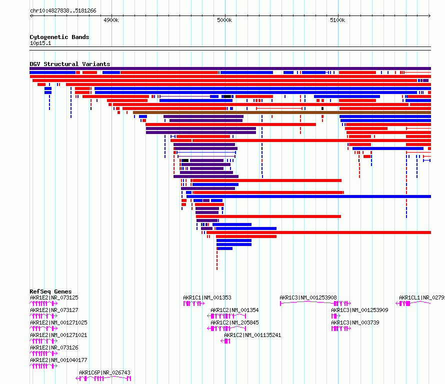 | | Variant Type | CNV deletion | | Copy Number | | | Allele State | | | Allele Origin | | | Probe Count | | | Validation Flag | | | Merged Status | M | | Merged Variants | dgv601n223 | | Supporting Variants | nssv17979975 | | Samples | | | Known Genes | AKR1C1, AKR1C2, AKR1C3, AKR1C6P, AKR1CL1, AKR1E2 | | Method | Sequencing | | Analysis | | | Platform | | | Comments | | | Reference | Sedlazeck_et_al_2020 | | Pubmed ID | 99999999 | | Accession Number(s) | nsv6453636