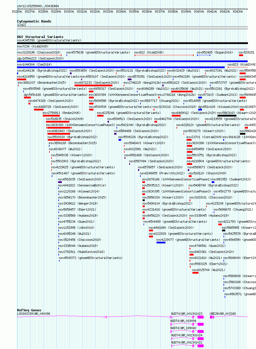 Variant DetailsVariant: nsv6463185| Internal ID | 21120738 | | Landmark | | | Location Information | | | Cytoband | 12q22 | | Allele length | | Assembly | Allele length | | hg38 | 177036 | | hg19 | 177036 |