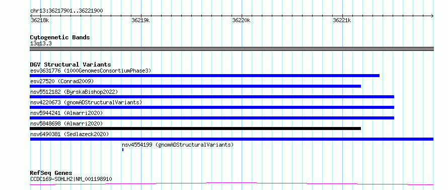 Variant DetailsVariant: nsv6490381| Internal ID | 21147934 | | Landmark | | | Location Information | | | Cytoband | 13q13.3 | | Allele length | | Assembly | Allele length | | hg38 | 4000 | | hg19 | 4000 |