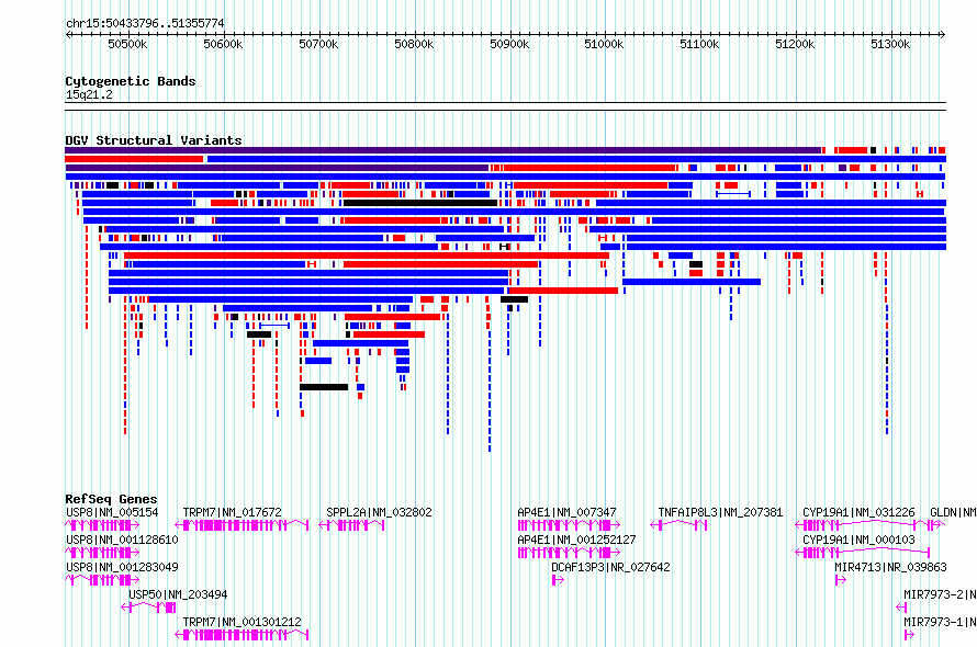 Variant DetailsVariant: nsv6499738| Internal ID | 20872961 | | Landmark | | | Location Information | | | Cytoband | 15q21.2 | | Allele length | | Assembly | Allele length | | hg38 | 921979 | | hg19 | 921979 |