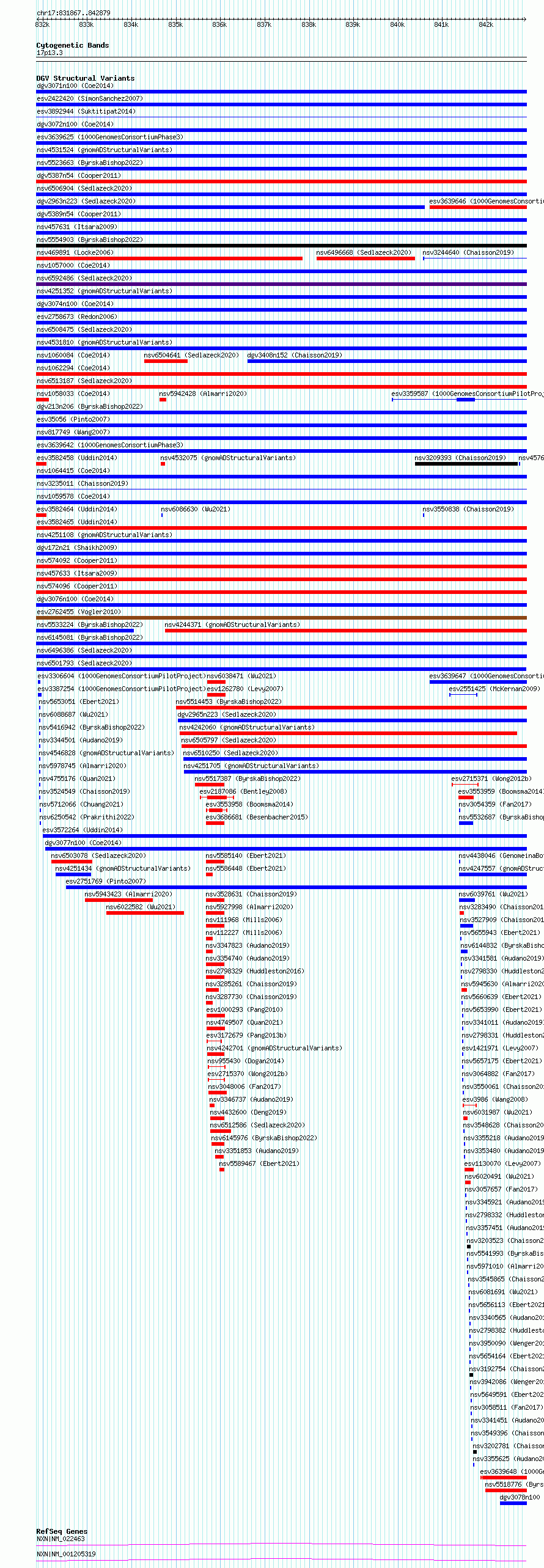 Variant DetailsVariant: nsv6501793| Internal ID | 20875030 | | Landmark | | | Location Information | | | Cytoband | 17p13.3 | | Allele length | | Assembly | Allele length | | hg38 | 11013 | | hg19 | 11013 |