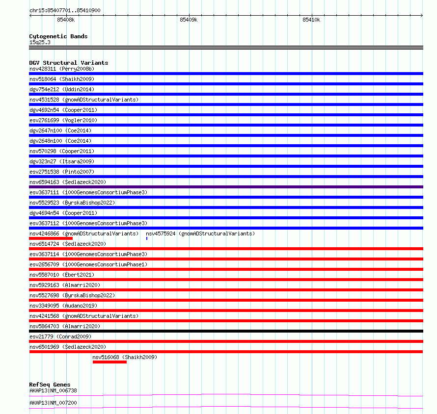 Variant DetailsVariant: nsv6501969| Internal ID | 20875209 | | Landmark | | | Location Information | | | Cytoband | 15q25.3 | | Allele length | | Assembly | Allele length | | hg38 | 3200 | | hg19 | 3200 |