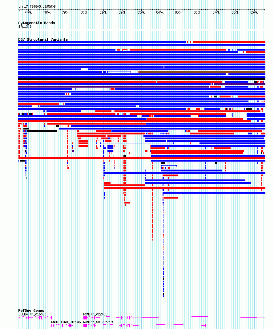 Variant DetailsVariant: nsv6513187| Internal ID | 20886528 | | Landmark | | | Location Information | | | Cytoband | 17p13.3 | | Allele length | | Assembly | Allele length | | hg38 | 130805 | | hg19 | 130805 |
