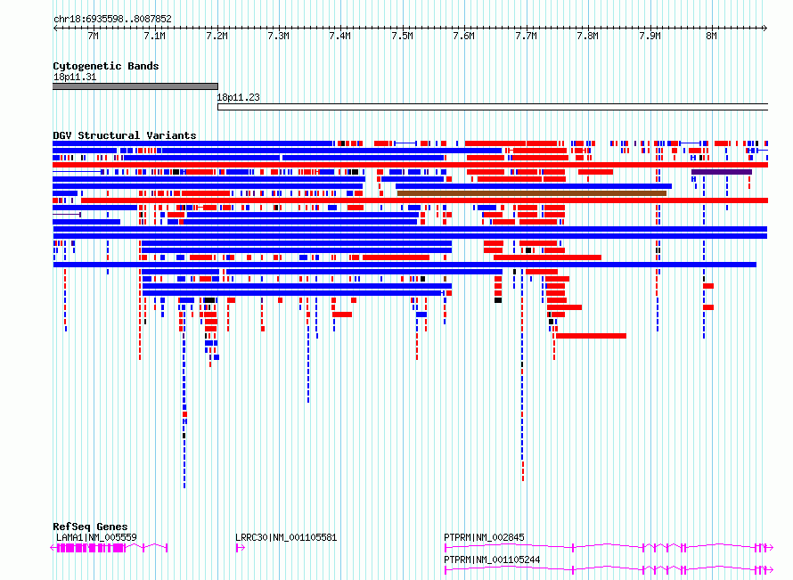 Variant DetailsVariant: nsv6516952| Internal ID | 20890313 | | Landmark | | | Location Information | | | Cytoband | 18p11.23 | | Allele length | | Assembly | Allele length | | hg38 | 1152255 | | hg19 | 1152254 |