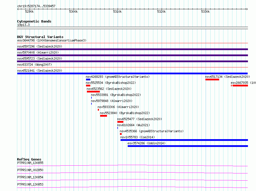 Variant DetailsVariant: nsv6521441| Internal ID | 20894802 | | Landmark | | | Location Information | | | Cytoband | 19p13.3 | | Allele length | | Assembly | Allele length | | hg38 | 52284 | | hg19 | 52284 |